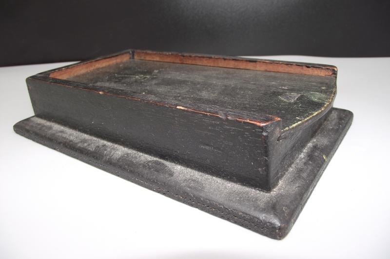 This nice hand made set turned up last week during a local house clearance. Inside where found written details of the owner with names and address. The number of dominoes is 27. Super little set and great for any home front display.