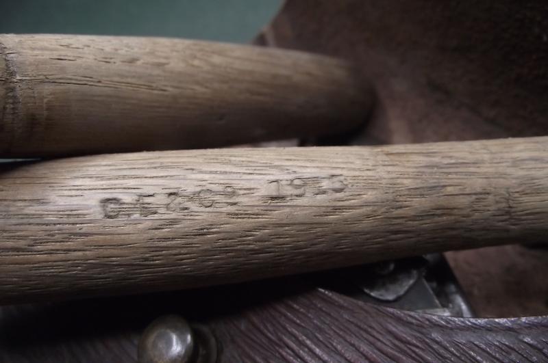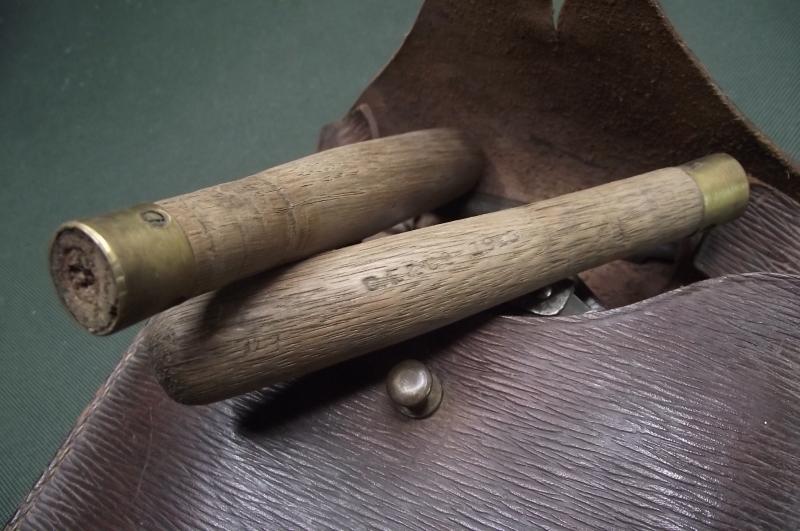 A very nice example with the leather 1915 dated pouch being supple and without loose stitching etc. The inside has its complete set with the wooden handles having a 1915 date as has the saw and the tool being dated 1916. If you want one then this would fit the bill and perfect for your display.
