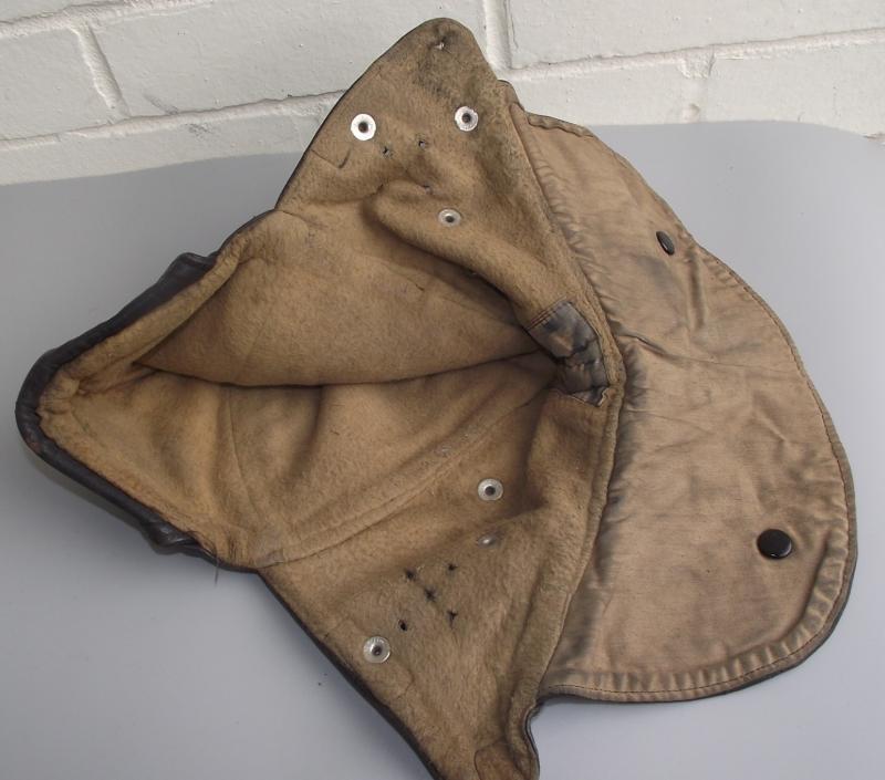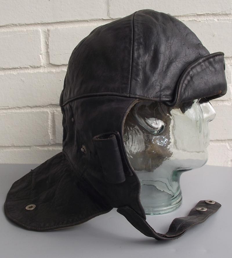 In very nice condition with supple leather , all buttons and straps present. The leather body has no snags or weak area just some staining and wear from being so old. All fixing poppers are marked N.B.Ltd. The inside has its complete lining with a clear inner label stating ''STORMGUARD'' As for size well it goes on my large head so i would presume its a medium to large. This is being advertised as a WW1 RFC item, there is no RFC stamps or dates but from period reference and todays collectors books items like this would be private purchased by the Flying officers at his local retailers. Wish it did have and RFC and date markings then i could chuck on a further 200 quid:) Anyway folks would look great with any Great War display.