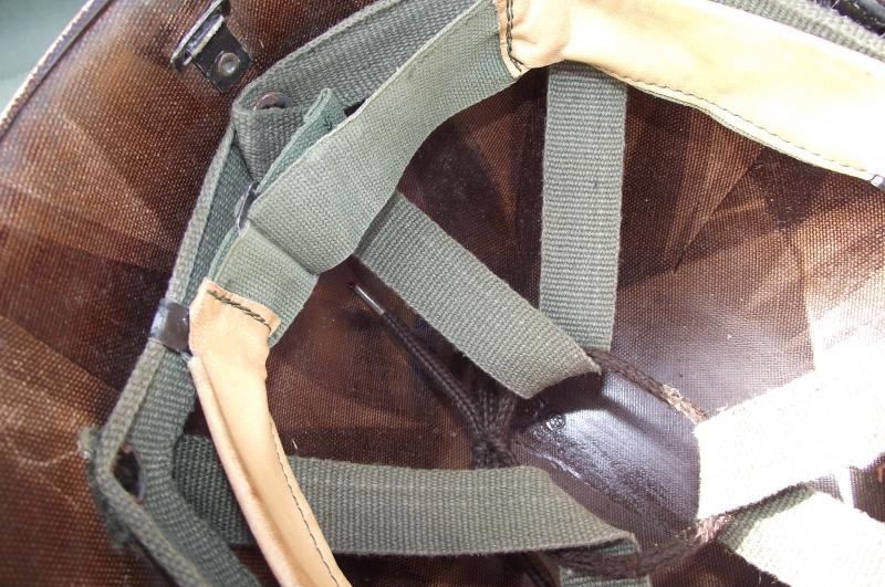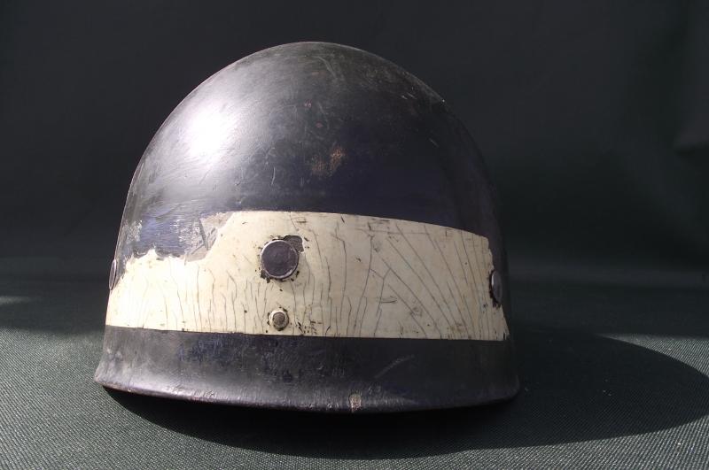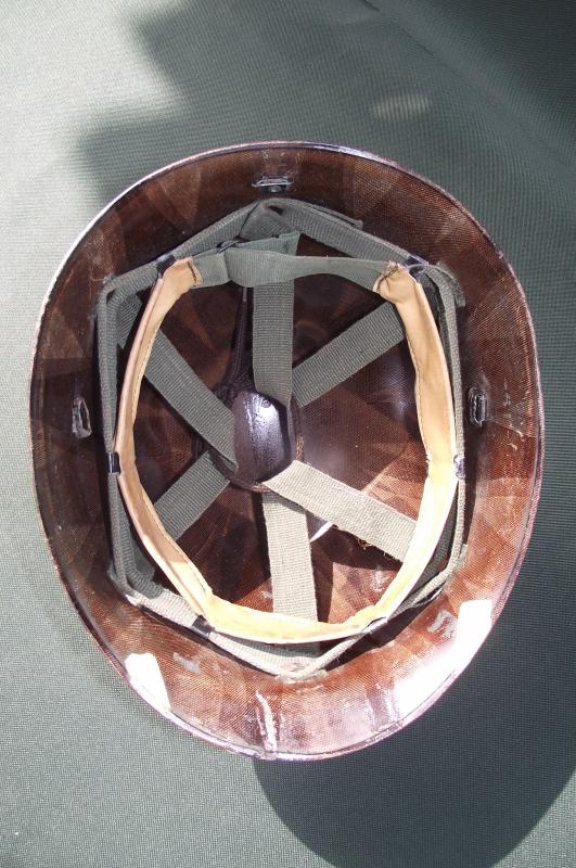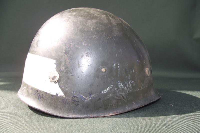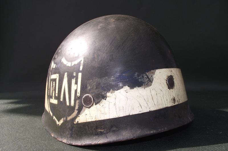 In good used condition with just a couple of minor fractures to the front edge. The Korean type liner system is complete and clean. Makers stamp found inside to the center of the liner, looks like a ''W'' with the number 105 underneath. At some point some of the Korean white letters have been removed.
