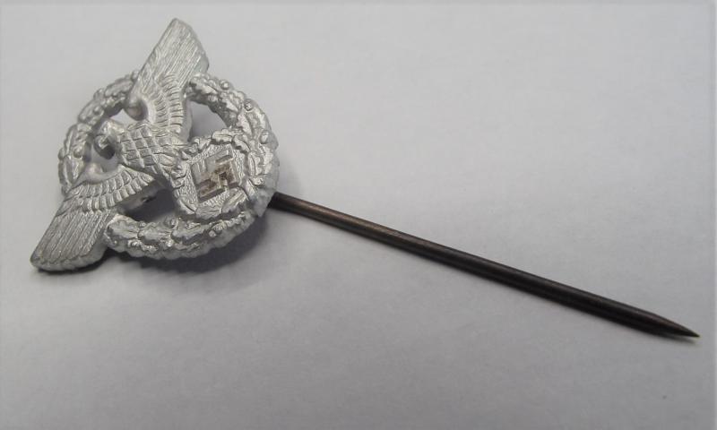 Very nice Police membership stick pin for wear on civilian clothing. Nice sharp strike to the badge with all its silver wash intact. No makers markings and a straight stick pin fastener.