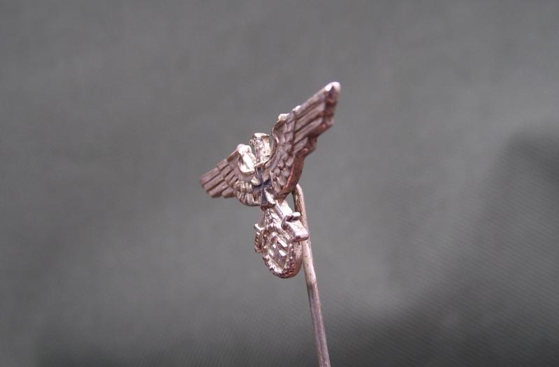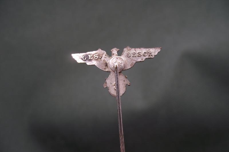 With the eagles head facing left this is the membership pin for the fairly short lived Soldatenbund created in 1936 and incorporated into the NS-RKB in 1938. Condition is very good , rear is clearly marked Ges-Gesch.