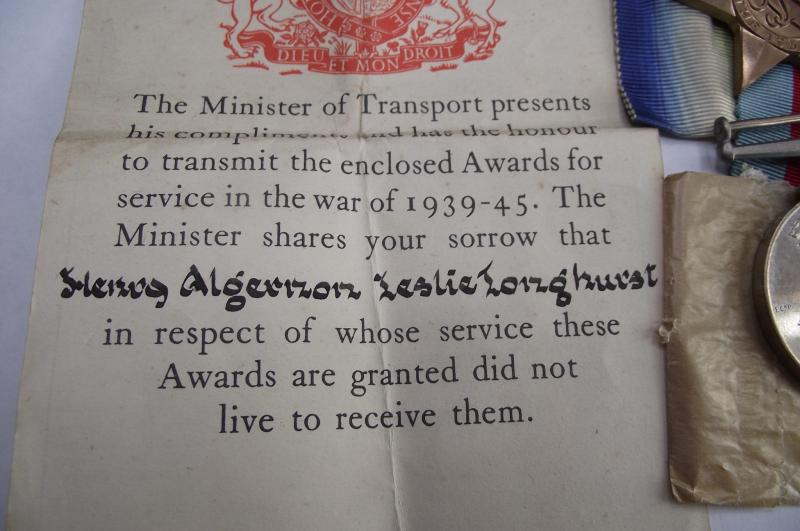 This little group recently turned up during a local Cardiff house clearance belonging to Henry Longhurst who was lost when the ship he served on,SS Ashcrest, was sunk in 1940 by U-140. Apparently Longhurst was from the Grangetown area of Cardiff. The medals are in nice condition, some cleaning, clean ribbons and medal entitlement slip. Slip has three medals ticked, Atlantic, 39/45 and the War medal. All found in the box that comes with this lot.