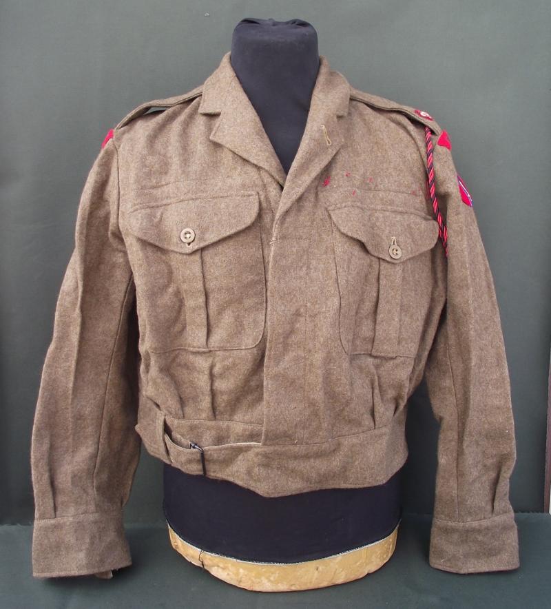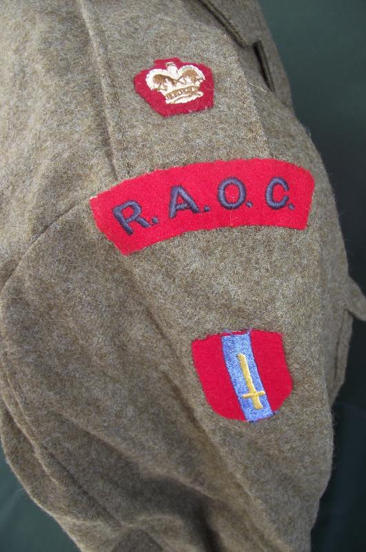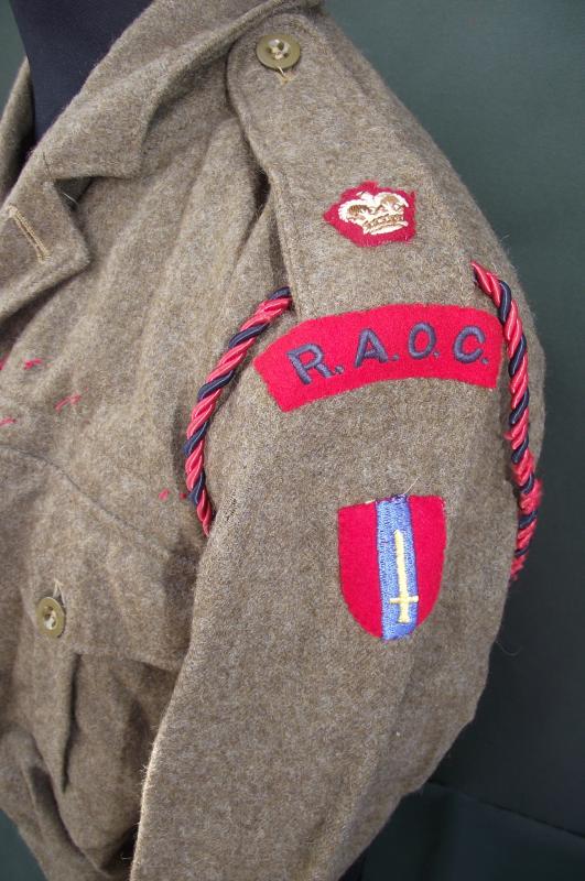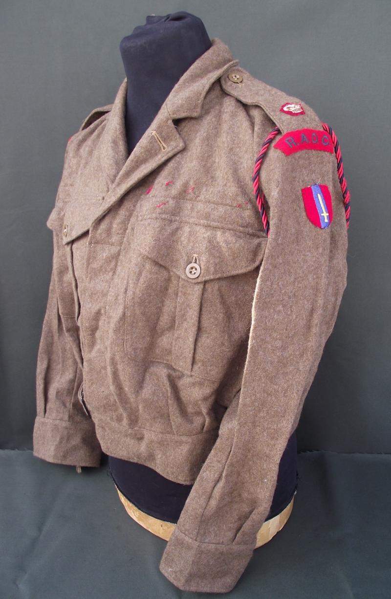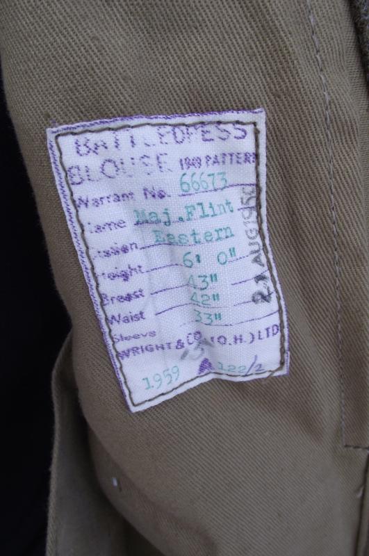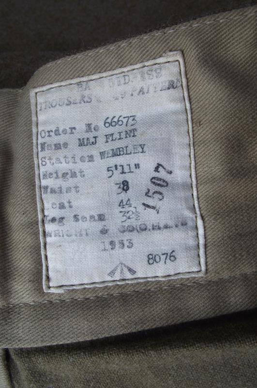 Large sized uniform named to a Major serving in the ROAC. The 42inch waist BD is in very nice condition with minimal moth nips, i can see two match head sized holes when holding up to the sun, The BD has its period insignia and lanyard. Inside label has clear size markings and name. The 38 inch waist trousers again in very nice condition with four very small moth nips, again clear label with size and name markings. The officers WW2 service ribbons have been removed and the set will need and ironing as its been in one of my boxes for some time!