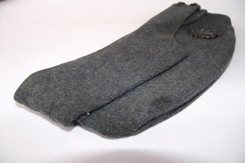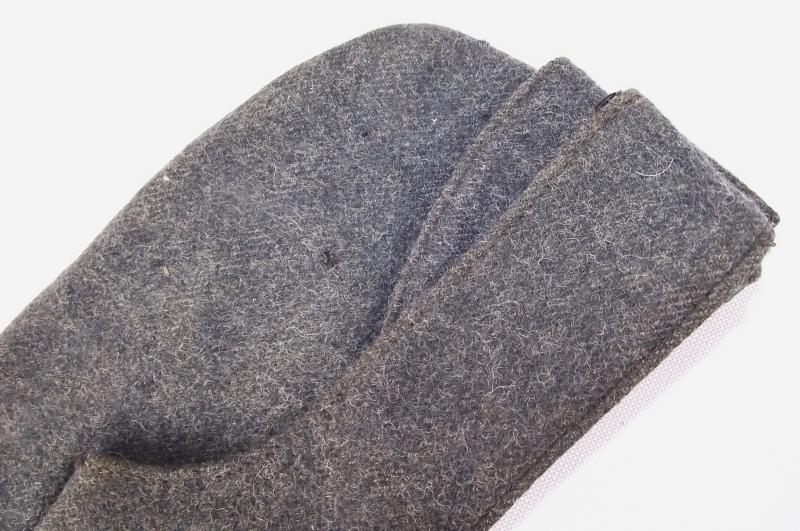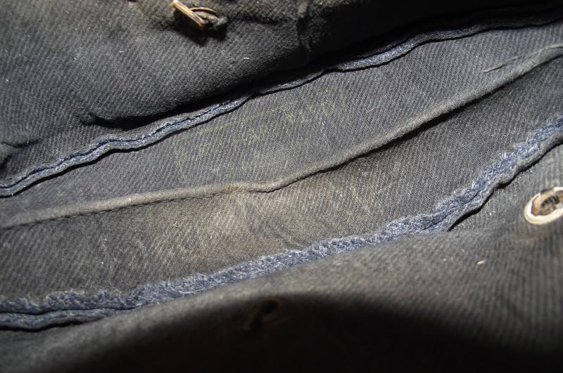 A well used side cap with good nap to the material and some minor moth nips to the front side and one larger nip to the back side. Cap has its period bakelite buttons, the bakelite RAF cap badge has been sewn down. The inside has a faded makers stamp that i believe is for the firm Harris of Glasgow. No size mark but i would say its around 6 and 3/4's.