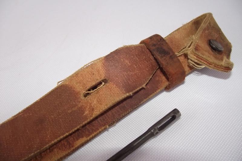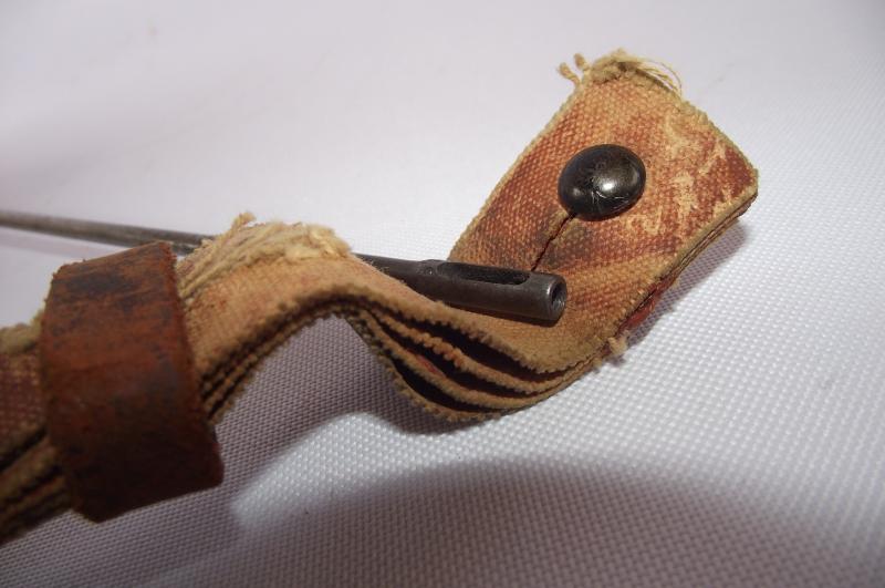 As seen in the pictures the rifle sling appears in complete condition but the late war lamination to the layers have come adrift in certain area. Found with the sling is a Japanese rifle cleaning rod and dust cover. A friend of mine before he passed away sold his firearms collection, i purchased a number of items related to the rifles he sold, these being taken off his Arisaka.