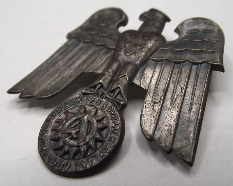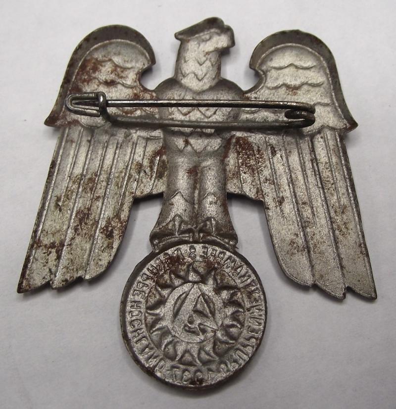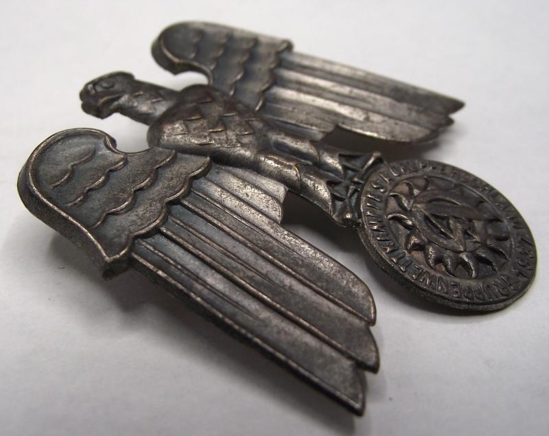 A super event badge with a great eagle to the main design and close to 100% of its period finish. The rear has its period fixing pin.