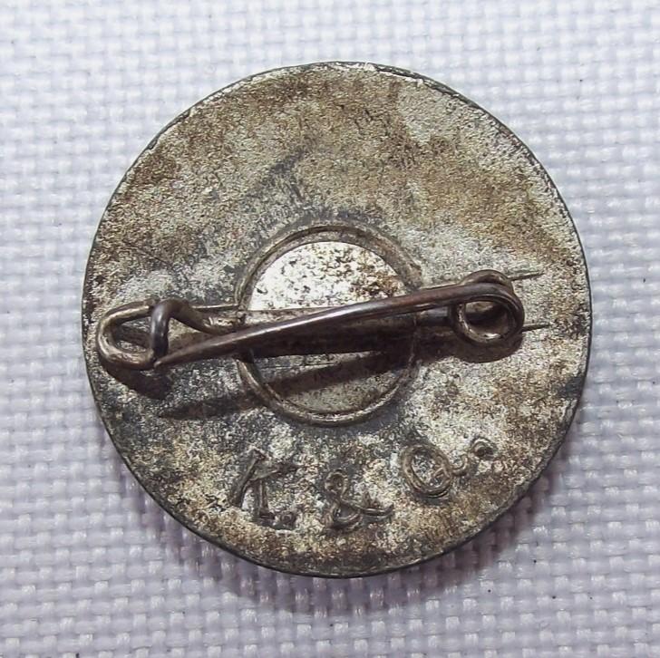 Painted version produced by the firm Klein&Quezer thats in very nice condition with close to 100% of its finish. The rear has its period fixing pin and makers details.