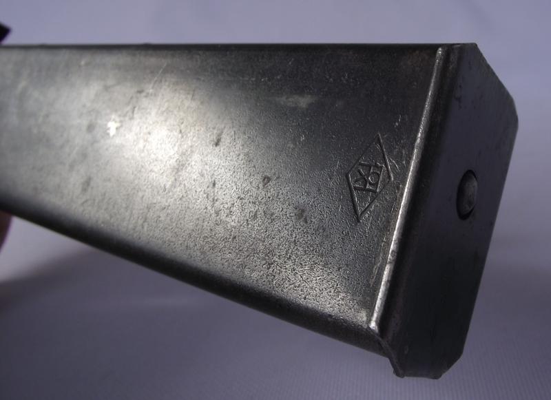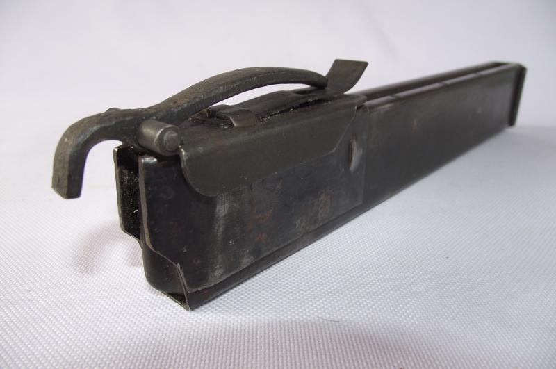 Both items are in very good condition. The unmarked loading tool has very nice flat finish, the magazine again with most its finish and makers stamp to the bottom side.