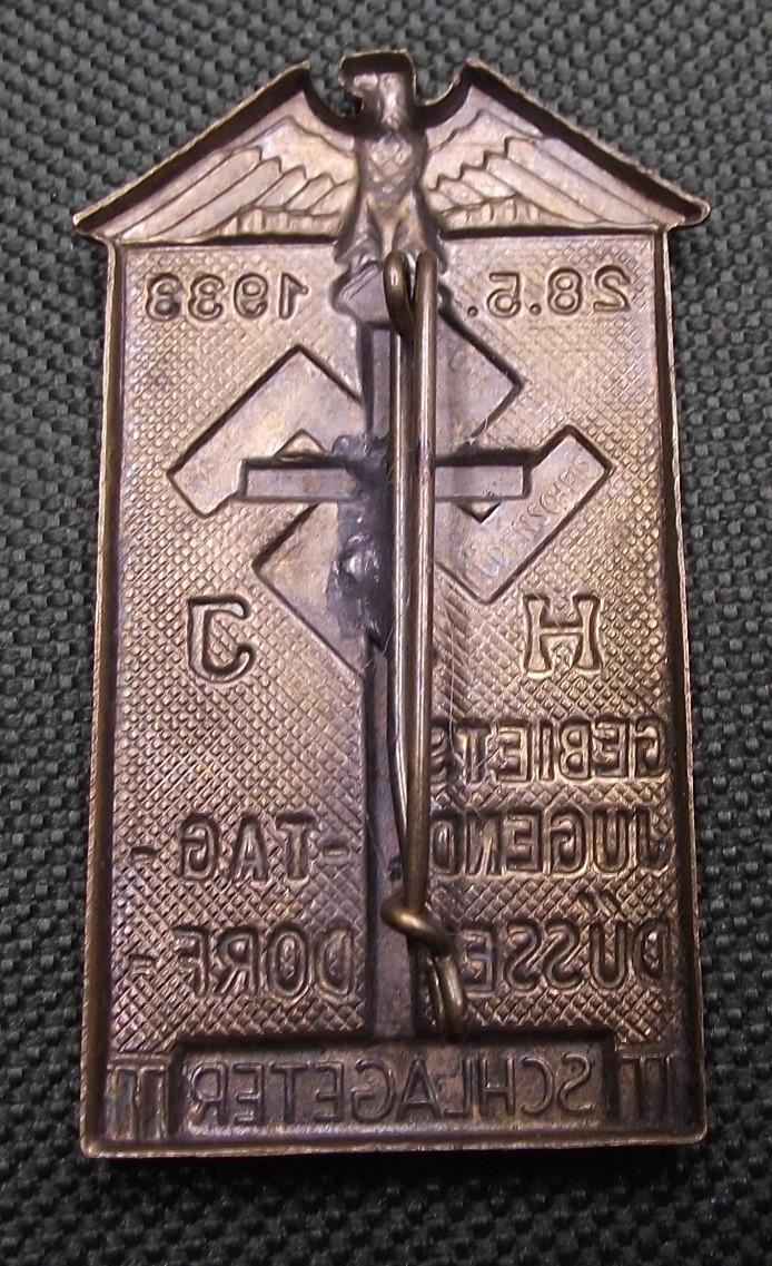 Nice early HJ event badge with a very nice amount of its period finish intact. The rear has its period fixing pin and makers details.