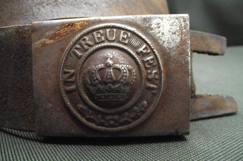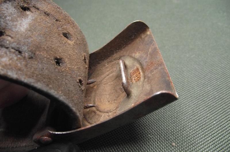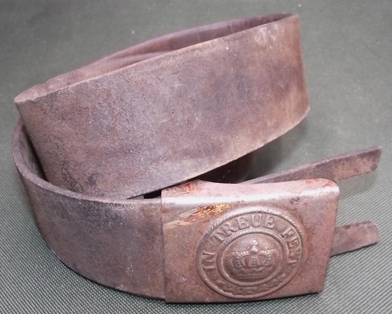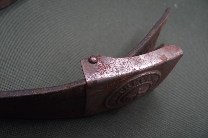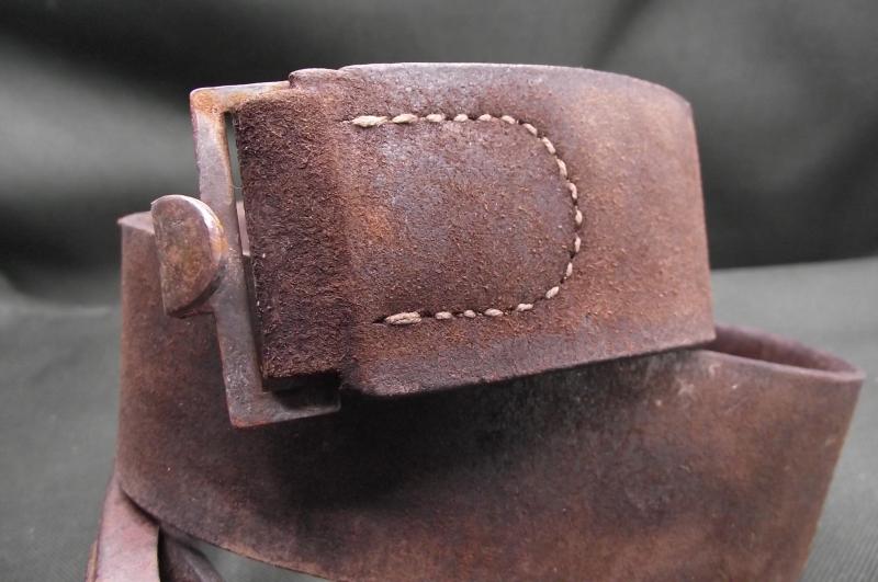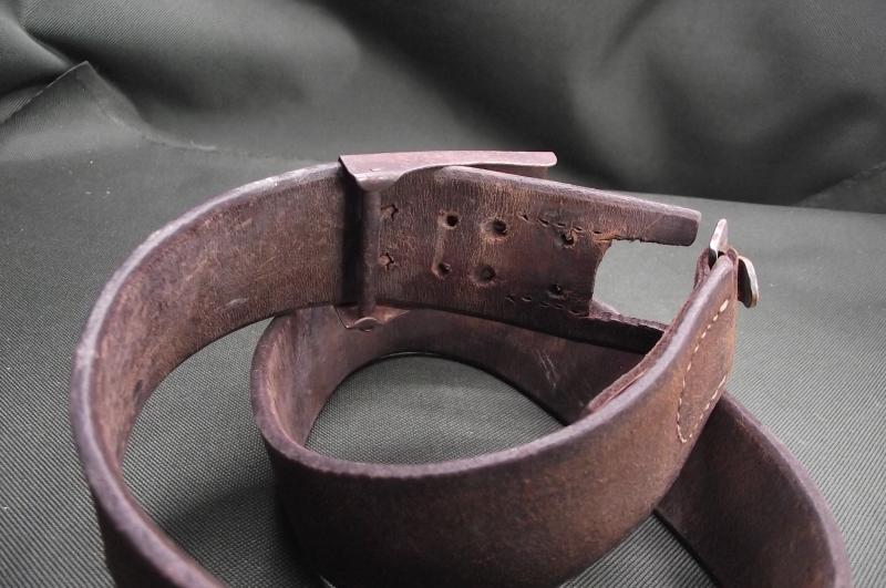 Late war steel buckle with sharp detail to the front Bavarian disk and slight surface rust only and both rear fixing prongs. The leather belt has seen better days and has one curious cut to he front for some reason. This set was found together as im sure you can see from the photos.