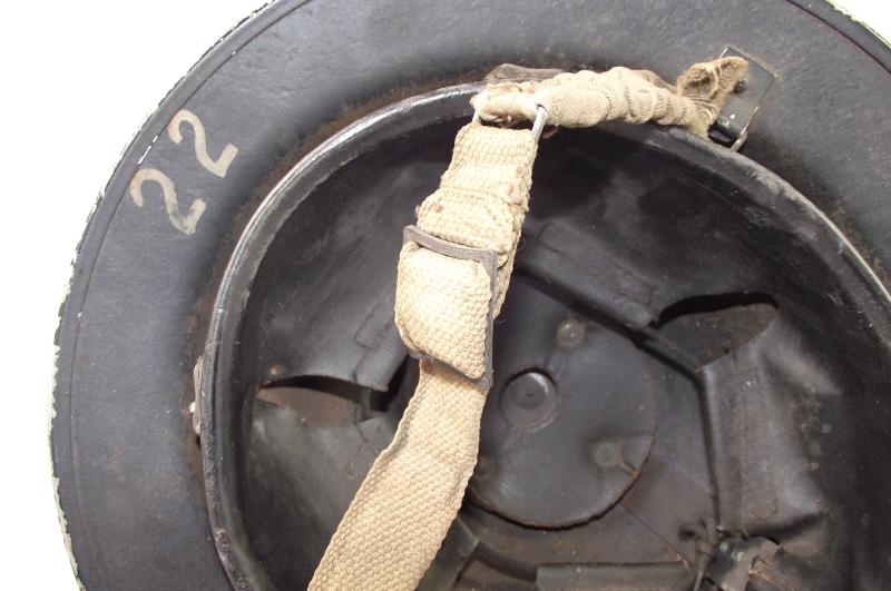 Nice condition steel helmet with close to 100% of its black factory finish, inside and out. One stacking rig mark to the top. The inside rim has some faint stamps, its numbered 22 in paint and has the early Vero donut type liner system complete and dated 1939. Sorry but the date is a weak stamp so could not photograph it! Its period chinstrap is complete with some marks from use and storage. Its a size 7 1/2.