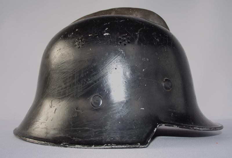WW2 German M34 ''Curved Dip'' Feuerschutzepolizei Helmet.