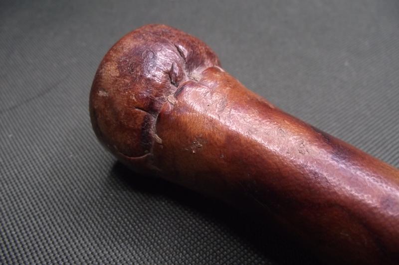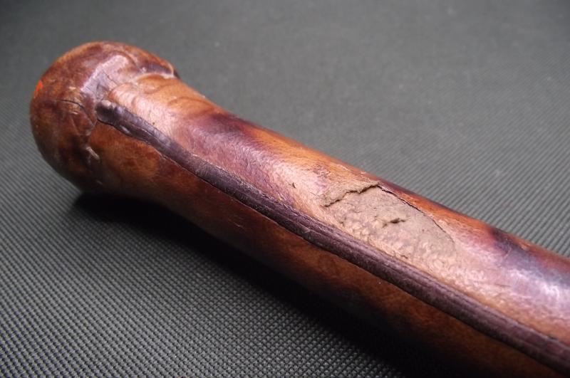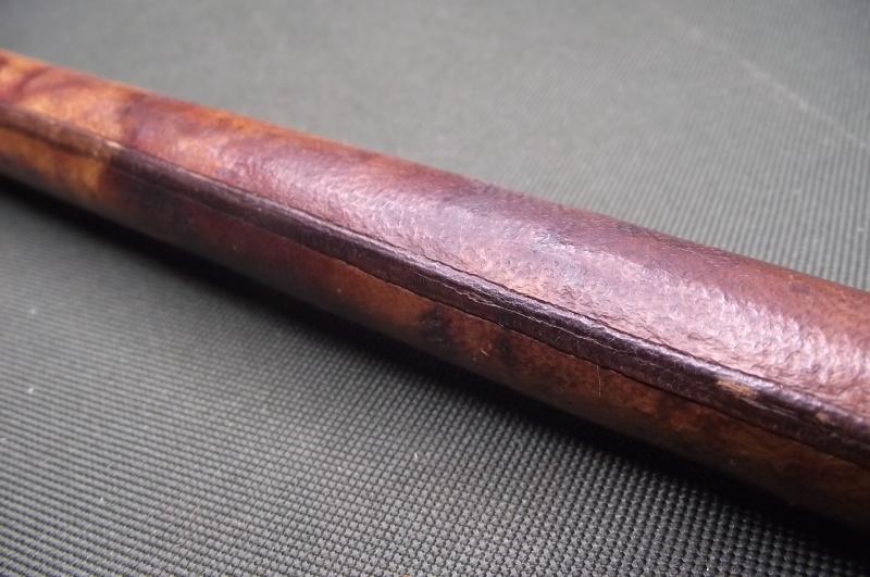 The item measures just under 17 inches in length. The shaft and weighted end has been covered in a type of skin with the side seam running the length of the shaft. As for date id say at least late 18c or early 19c, cannot say if its a naval used example. I picked it up many years ago and added it to my collection of naval bosuns persuaders at the time.