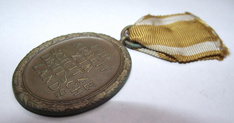 Late war manufactured example stamped in zinc. The Factory finish i would rate at close to 100% complete, scarce for zinc west walls. The detail is sharp, ribbon is its period example.