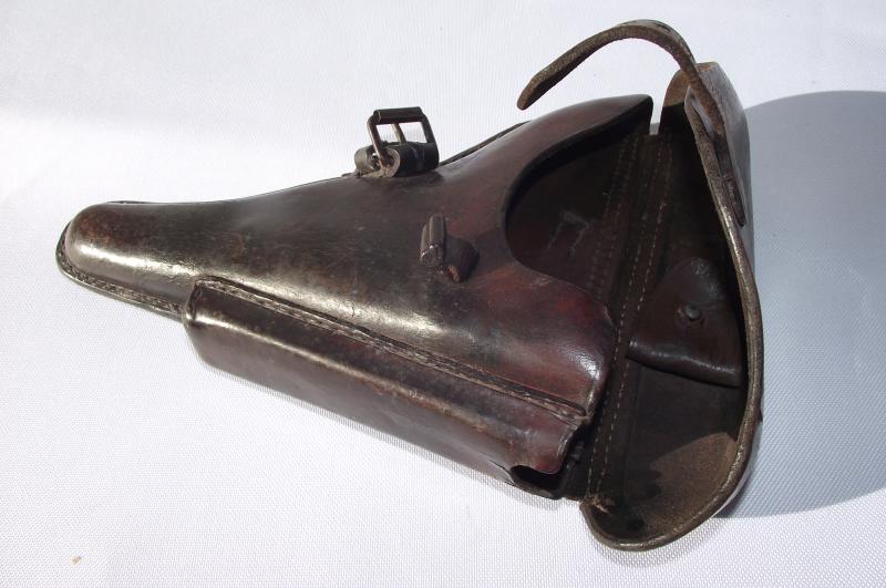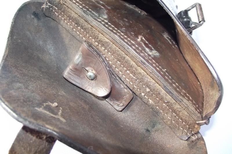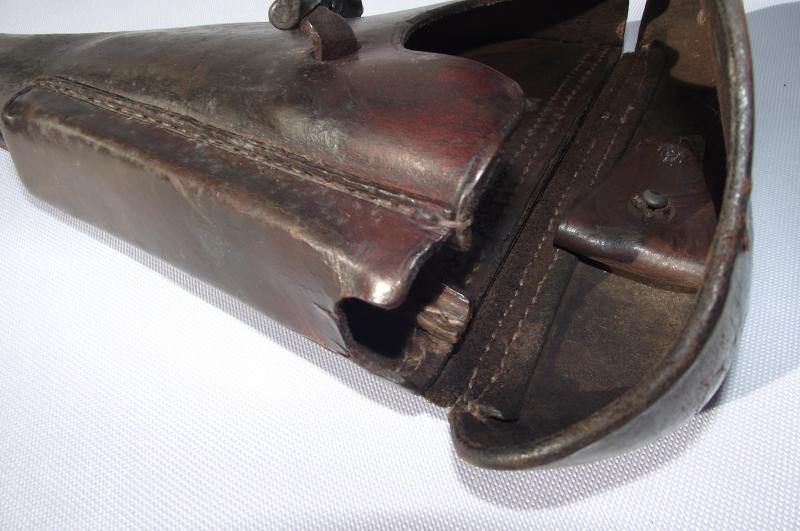 In very nice condition with supple leather body, strong front fastening strap, tight stitching, complete inner pocket for the tool and a worn makers stamp and date found to the inside of the flap. At some point one back strap has been replaced.