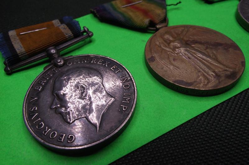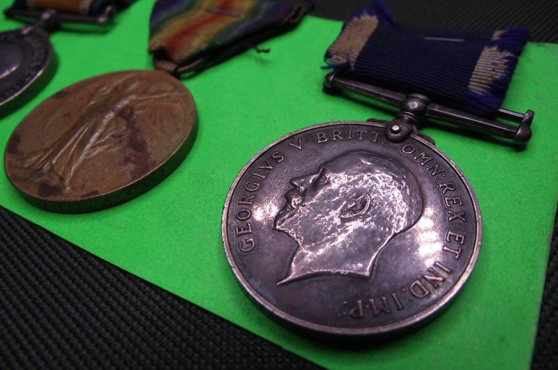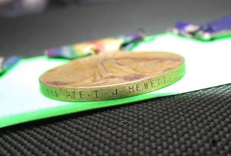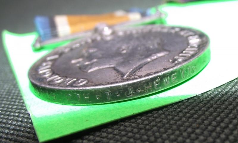A well used set belonging to ...CH-20105-PTE-T.J.HEWETT who served in the R.M.L.I. during WW1. All medals are clearly stamped with Hewett's full details. As a side note Hewett was born and enlisted in London aged of 17 in 1915, he also served during WW2 as well.