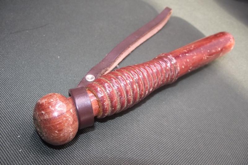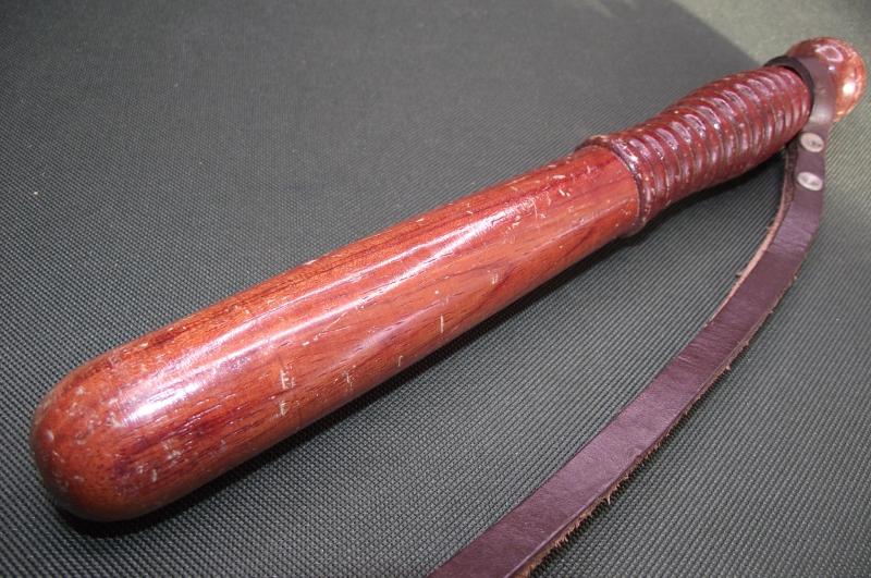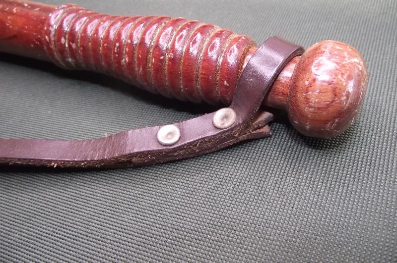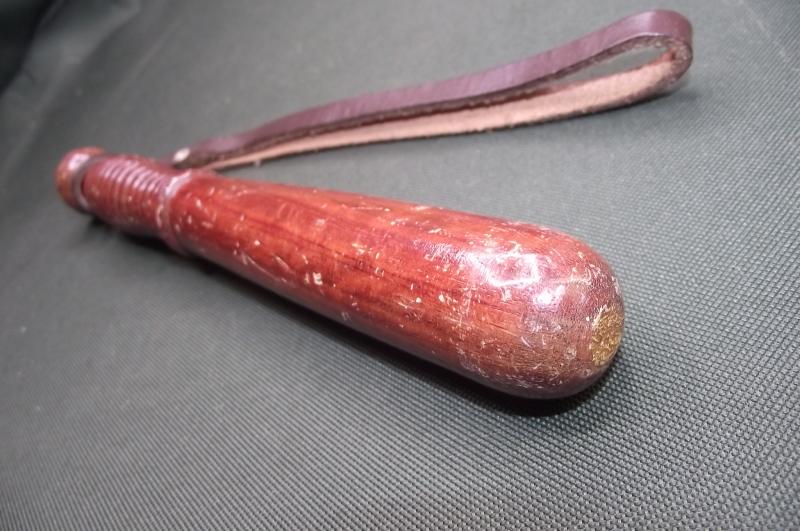 In nice condition with no chips to the wood just a certain amount of marks to the varnish from use and storage. Comes with its period leather wrist strap. Measures around 10 inches in length.