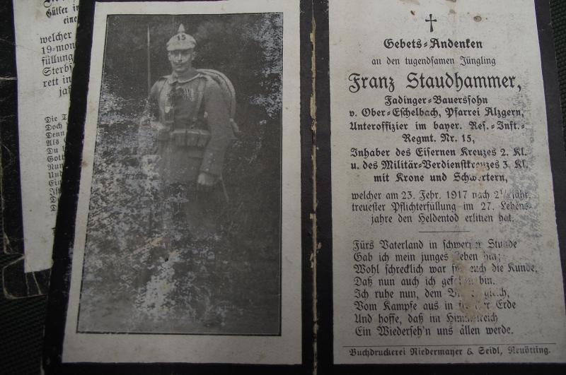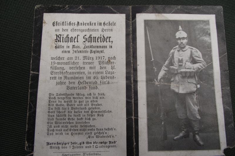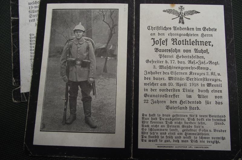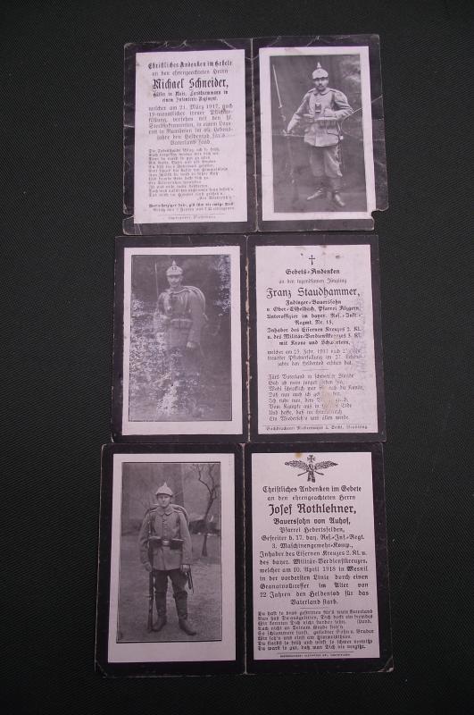 Three different death cards with the soldiers photos wearing spiked helmets.