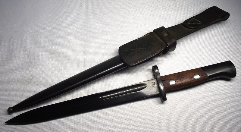 A very nice clean example with the blade and hilt having close to 100% of the period finish intact and clear markings including matching numbered scabbard. Both wooden slab grips are close to perfect.