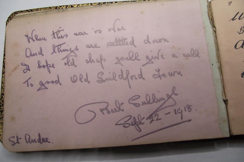 Sorry but not full of famous generals or actors but the type used by most girls during the period to capture certain sentiments from friends and guest etc. You can find these usually put together by nurses and full of quotations and joke from wounded servicemen. This example is smaller but does have a good amount of pages written and dated by WW1 British soldiers mixed in with other friends. Cannot find any mention of a nurse but still a sweet item of British Social History!