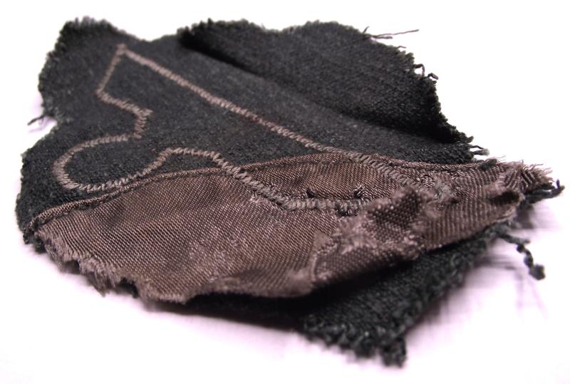 A super ''Cut Off'' example of an other ranks M39 breast eagle with a good amount of its period HBT uniform remaining. The eagle as seen is machine stitched to the material with one fold line running across to the top. To the rear can be found some of the jacket lining.