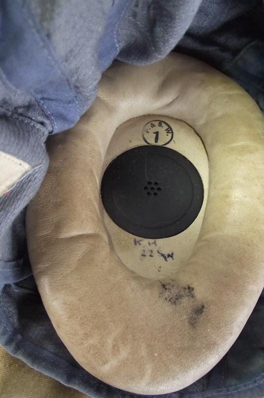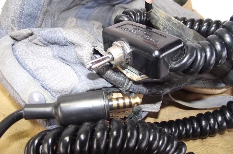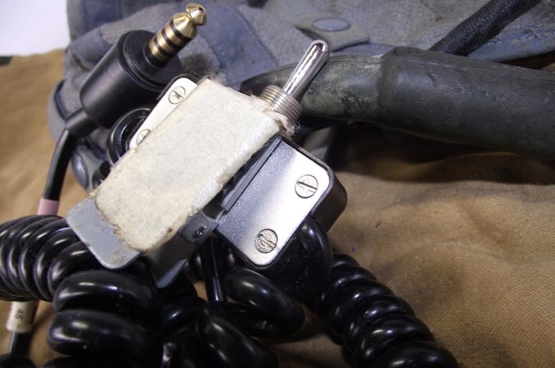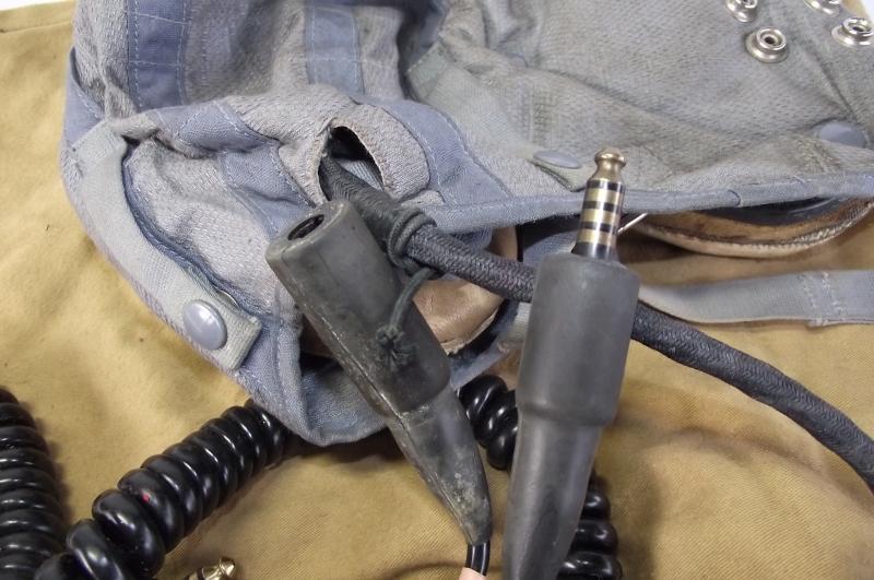 The cloth helmet has nice bright color with just minimal stains from storage with chinstrap. Helmet is fully loomed with clean receivers and 1960's size and stores number label. This example comes with a long length wire loom with Rascal Accoustics microphone switch and its period cloth carry bag.