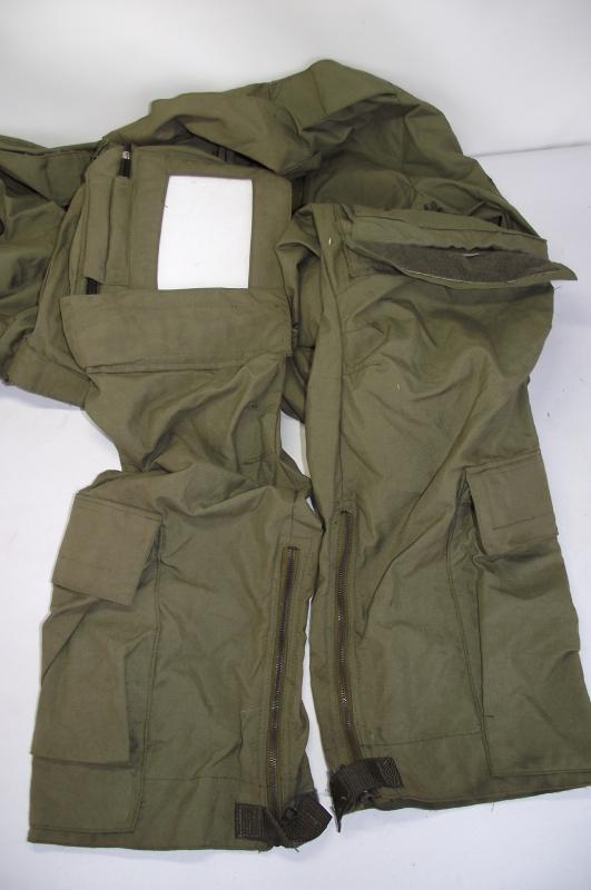 Nice complete set of overalls from the late 80's with clean material, no snags, rips or loose stitching, all zips in working order. The inside product label is clear with details with the owners name written in pen. To the side of one leg can be found the emergency knife with Nato stores code, his pens and inside a pocket i found a metal comb and emergency whistle, also found is one dog tag fastened to the front. Nice complete set to an RAF member who served in 72 squadron during there time flying helicopters. During the 80's the squadron was based in Northern Ireland flying Wessex helicopters.