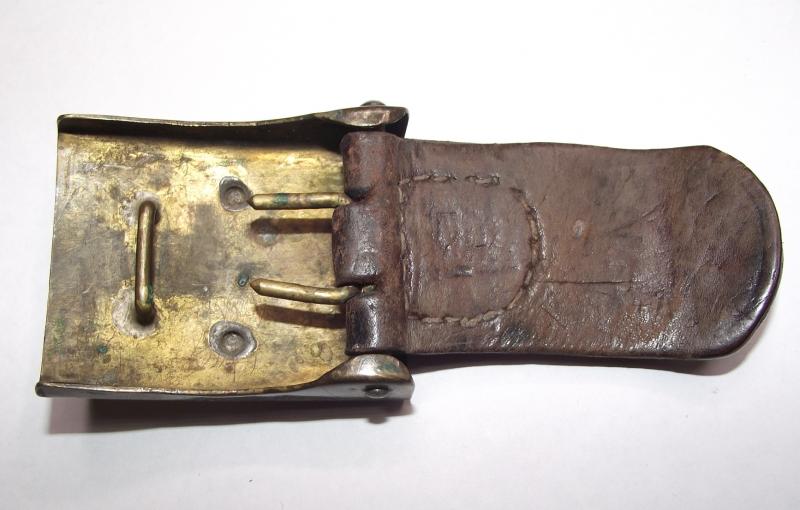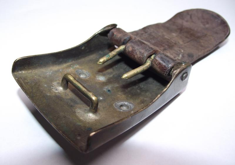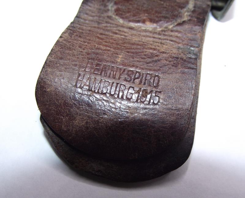Very nice brass buckle with just a minor knock to the front plate, plenty of patina as this one has not been cleaned or polished. The rear has its period catch and fixing prongs with a very nice maker marked and 1915 dated leather tab.