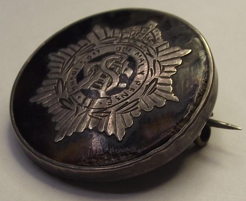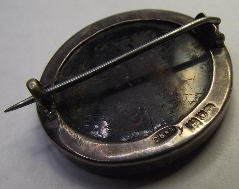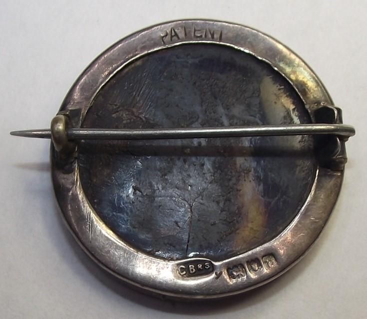 In nice condition tortoise shell and silver inlay badge with its period fixing pin and silver hallmark.