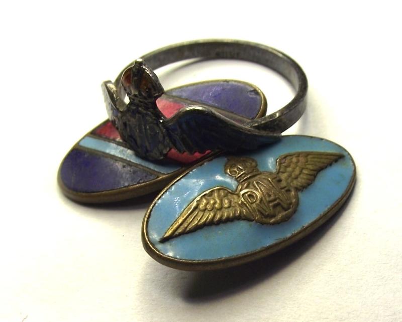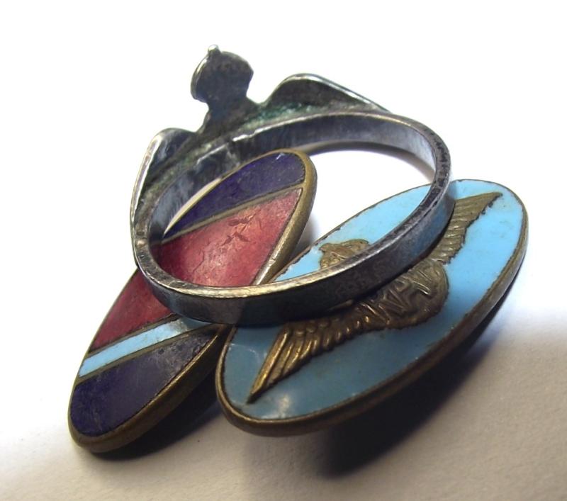 Nice ring with clear enamel work, some wear from use in my opinion and i believe made from silver! This comes with one RAF cuff link found amongst a small lot in Cardiff that belonged to a Flight Engineer in the RAF during WW2.