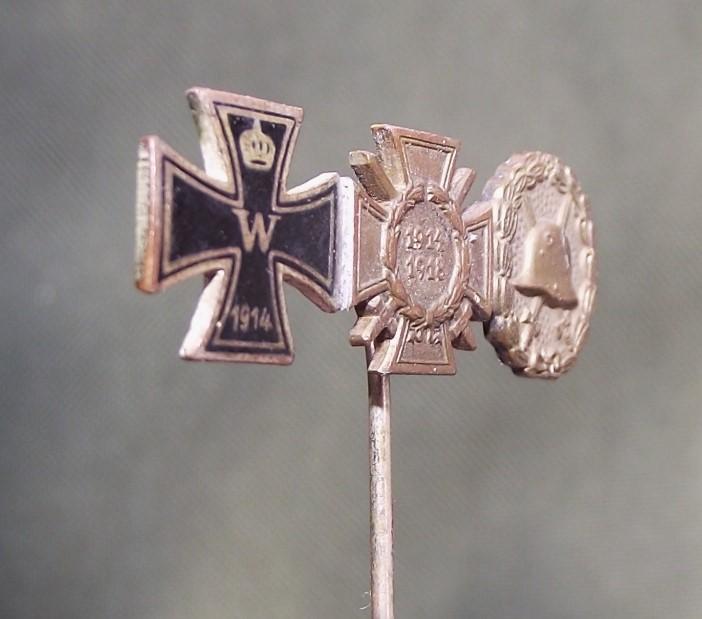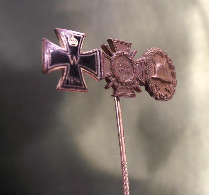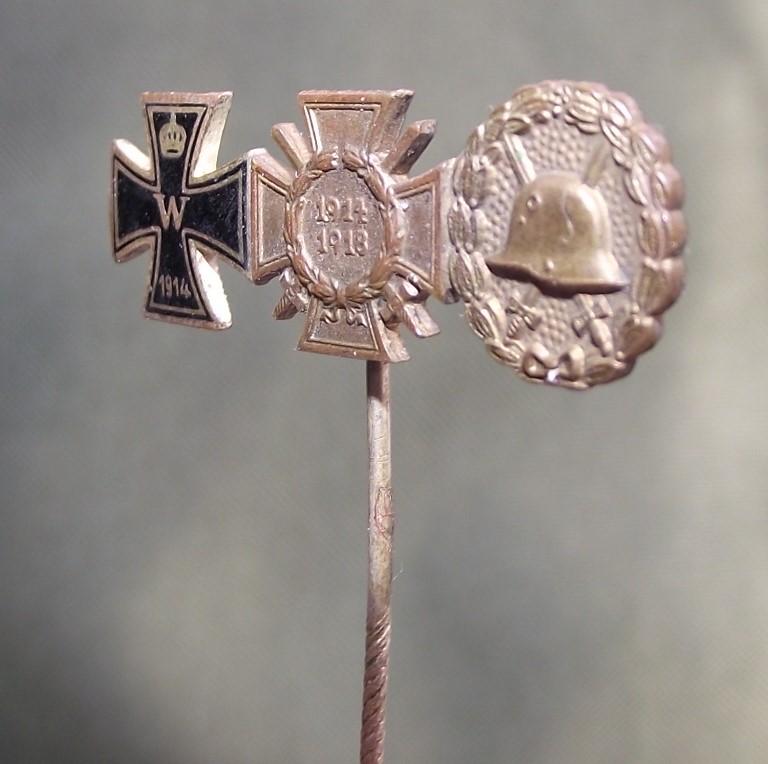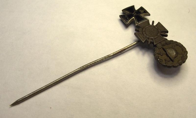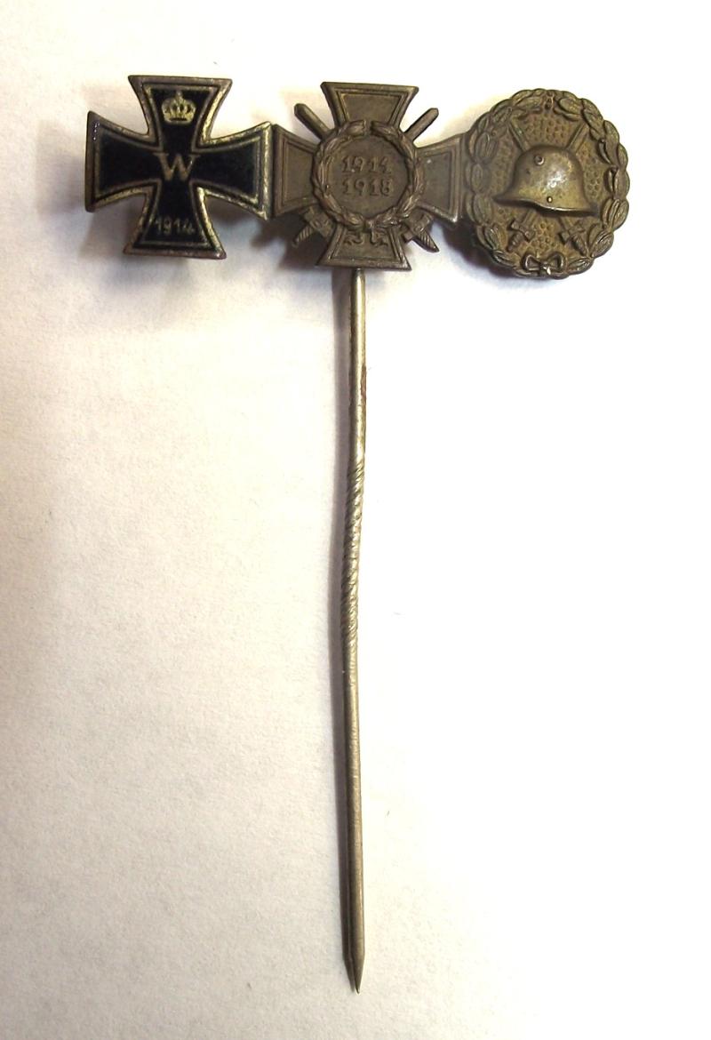 WW1 German Stick Pin. Iron Cross 2nd Class, Honour Cross and Gold Wound Badge.