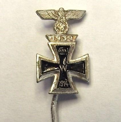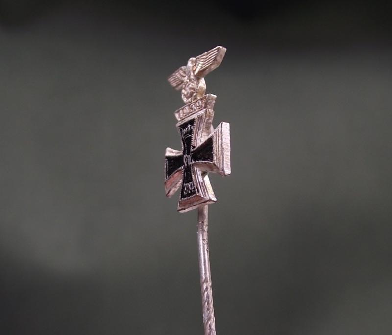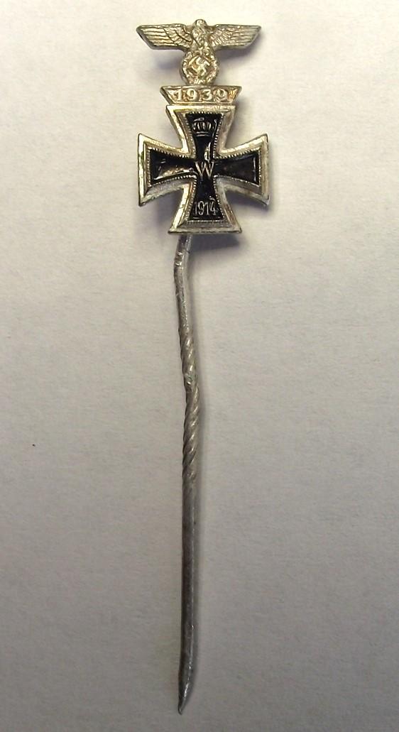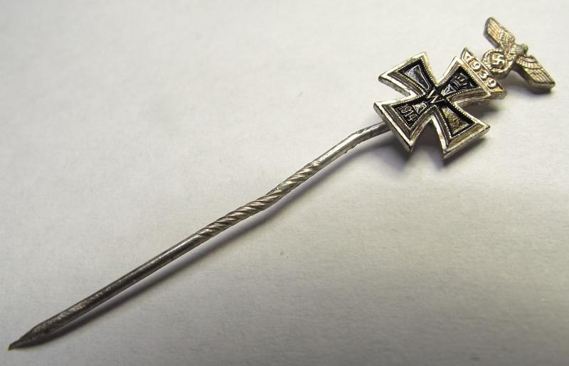 WW2 German Stick Pin. 1914 Iron Cross 2nd Class and 2nd Class Spange, 1939.