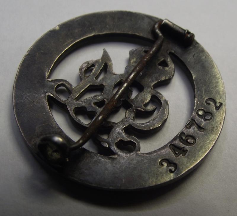In nice condition with its period fixing pin to the rear and the soldiers number.