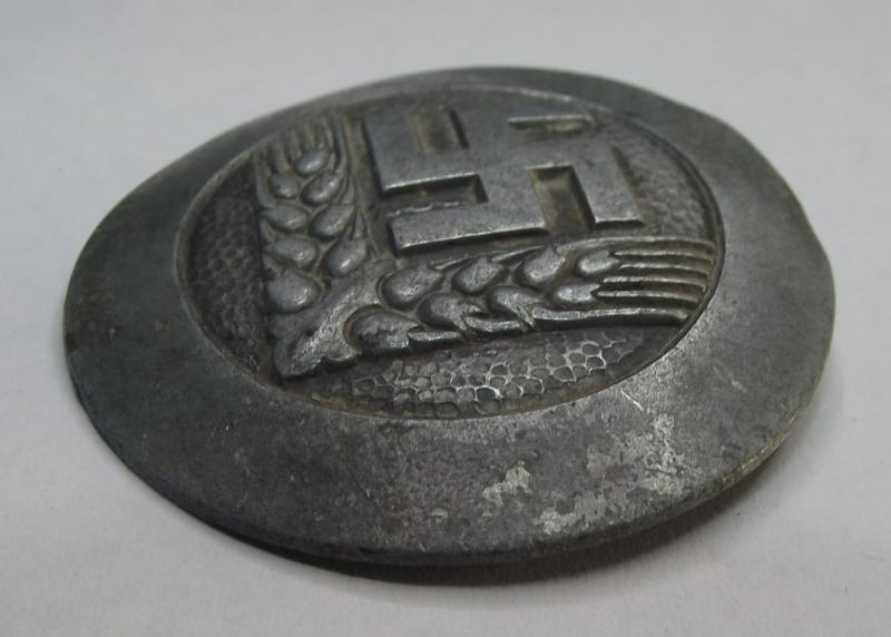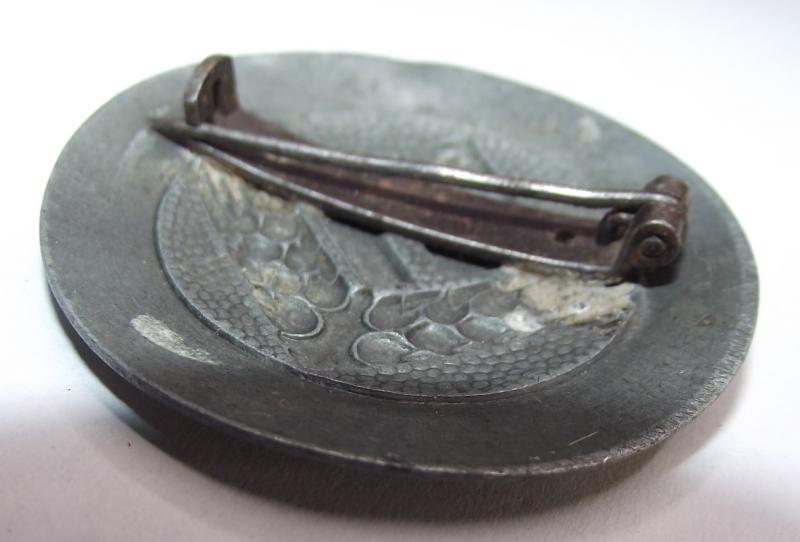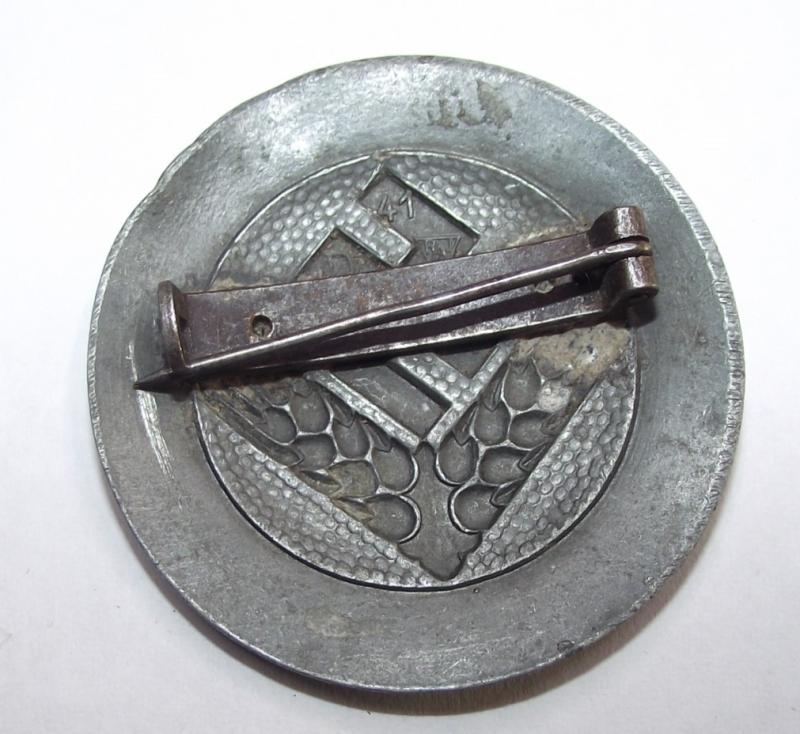 Third pattern convex metal brooch with one slight knock to the top left corner. The back has a 1941 date and makers details running under the fixing pin.
