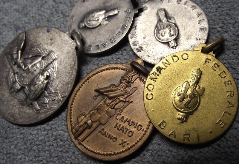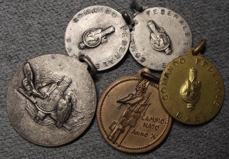 All five late 1930's period medals are in very nice condition retaining nearly all period finish. None are named but four are marked to the ''GIL'' youth section of the Italian Fascists.