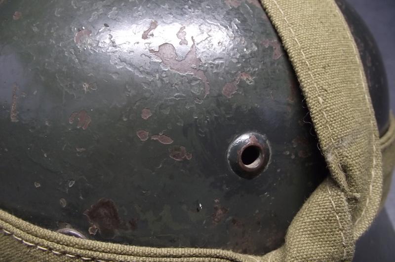 As an added note, the wear to the bottom edge and other places would suggest this helmet did have a bread bag strap fitted by the original owner at some point.