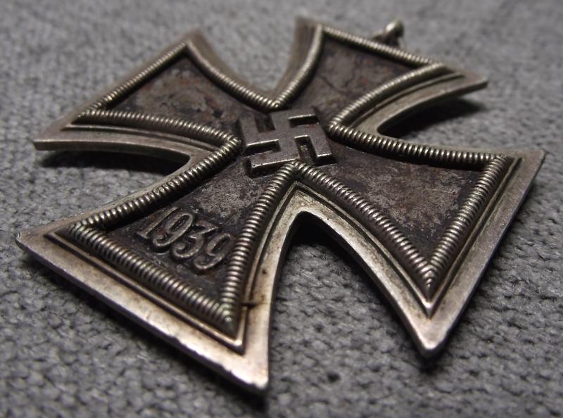 This example has seen better days losing nearly all its finish to the iron center. The two piece frame is tight and there is nice sharp detail the beading. Top ribbon ring is missing.