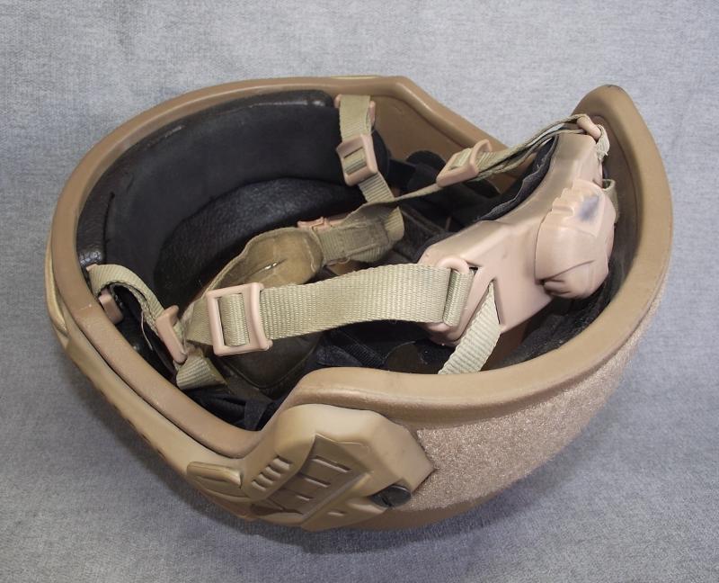 This is an unbranded example of the Future Assault Shell Technology first unveiled by ''Ops-Core''. I purchased this helmet ,with a few other, being sold by a French service man who tested a number of helmets for the French military in Africa, ive kept a couple for myself of course as im a bit of a ''helmet nut'' to say the least. The helmet is in very nice condition with little service wear, no dents or scrapes to the outer shell, complete side rails and front NV mount with both bungees. The inside liner system is complete, some minor wear to the front sweatband as expected for use in Africa. Rear head adjuster works fine and the 4 point chinstrap harness is complete with working fastener . I cannot find any makers details but there are many firms in the States, Europe and Asia making these. As an interesting side note the weight is slightly heavier than the Ops-Core ''FATS'' helmet i have listed, item-61334.