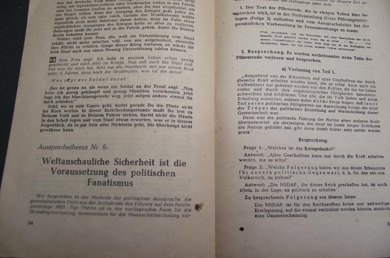 Both are complete and in good condition. Amazing to think that even in 1944 these sort of booklets on Political indoctrination where still being issued. My guess is they might well have been used in the trenches for other purposes!