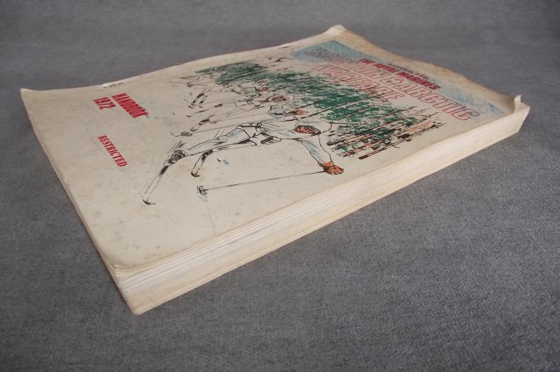 A nice large and complete handbook used by the Royal Marines in 1972 with a certain amount of foxing to the front cover only. This scarce handbook was compiled by Major Roderick Tuck RM, GSO2, M&AW Headquarters, Commando Forces and was restricted for Military eyes only. Just short of 400 pages on Arctic Warfare.
