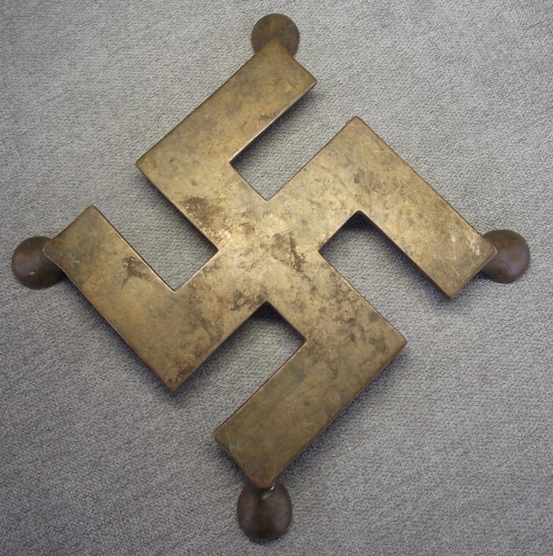 Large brass trivet in the form of a Swastika. Condition is very good.