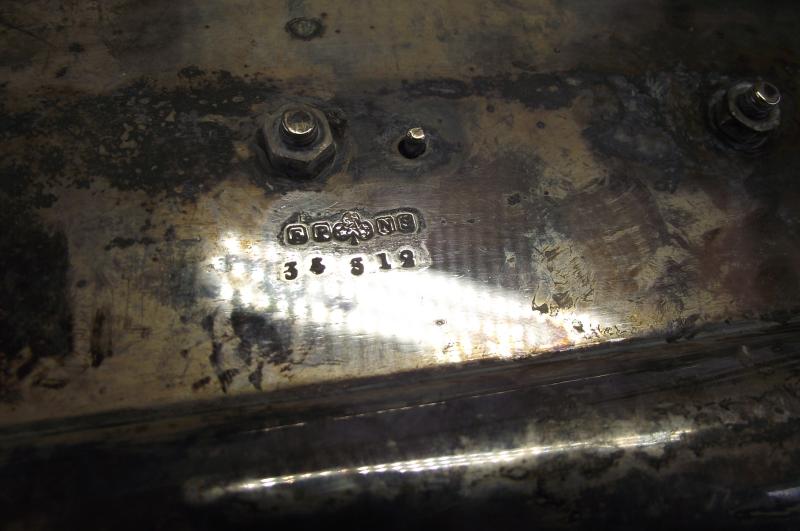 A very nice complete presentation inkwell set to an officer serving in E company , 1st Volunteer Battalion of the Hampshire Regiment. The set has taken on a certain amount of dark patina not having been polished in many years. Both glass ink pots are undamaged, one top lid back pin has been lost being replaced by a wire. The bottom is stamped including the pattern number. Nice display piece.