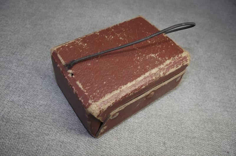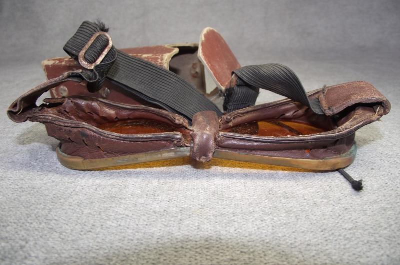 In good condition with the clear with just minor lifting to the outer edges. The leather body is supple with one area of damage to one side where the metal spring can be seen poking through. Back strap complete with good enough elasticity. The box is in good order with good finish.
