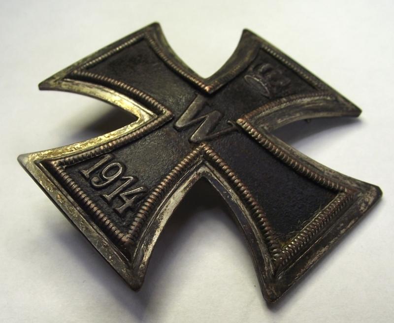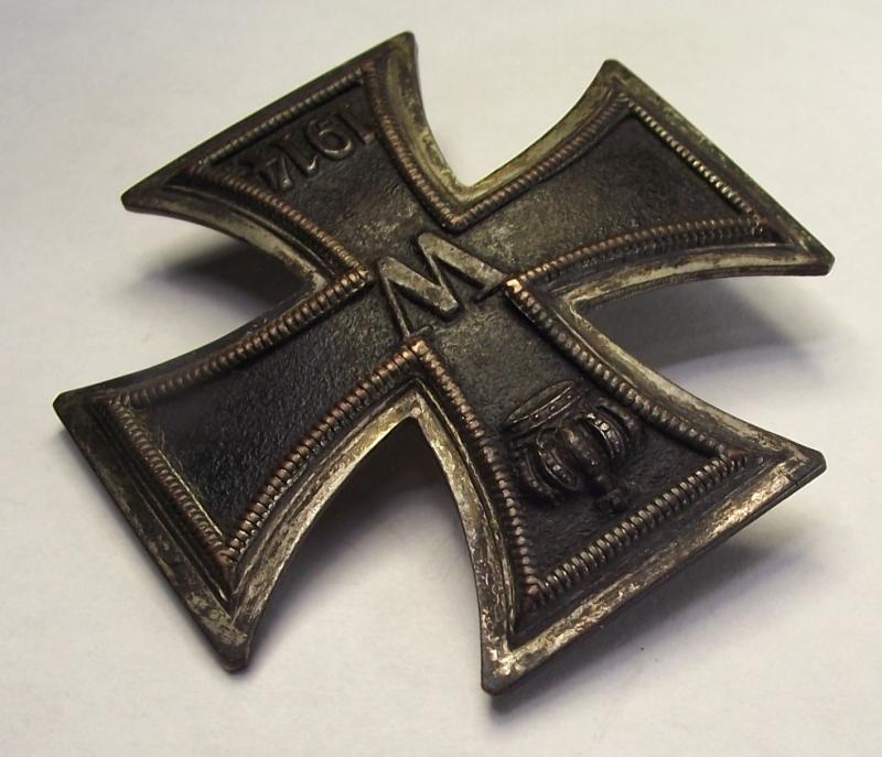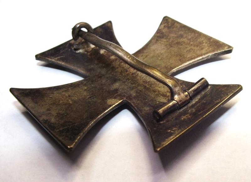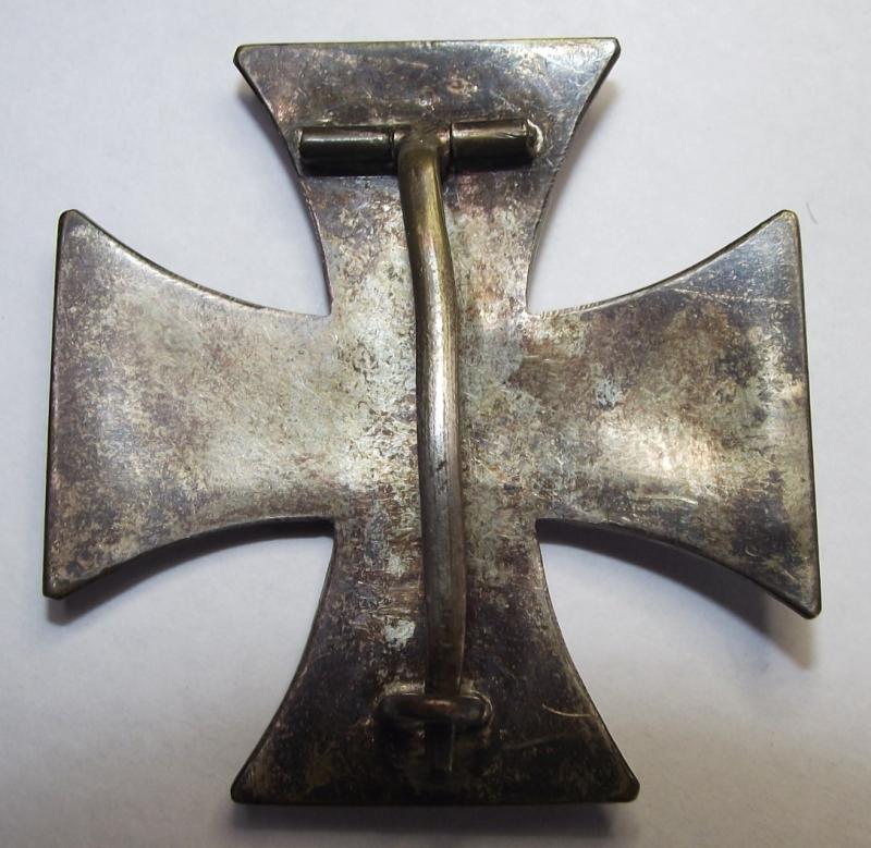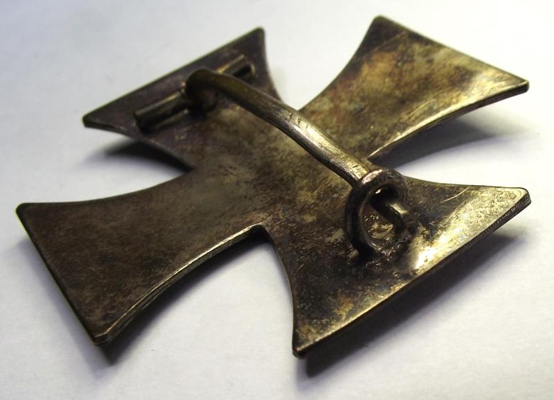 A nice well used example with over 75% of its black factory finish to the iron center and sharp detail. The tight concave two piece frame is non magnetic being made i believe from copper coated brass as is the pin. Overall this cross has a good amount of dark patina. No makers stamps!