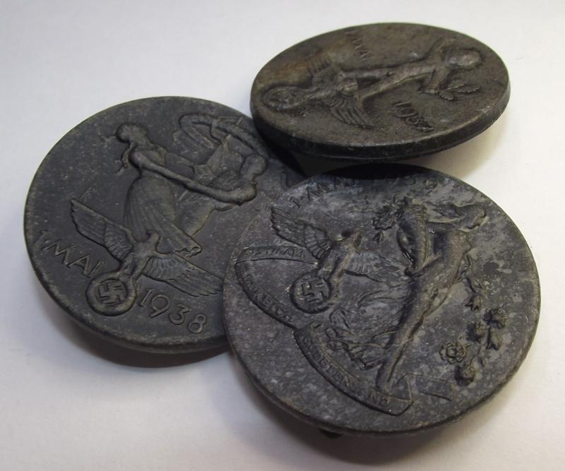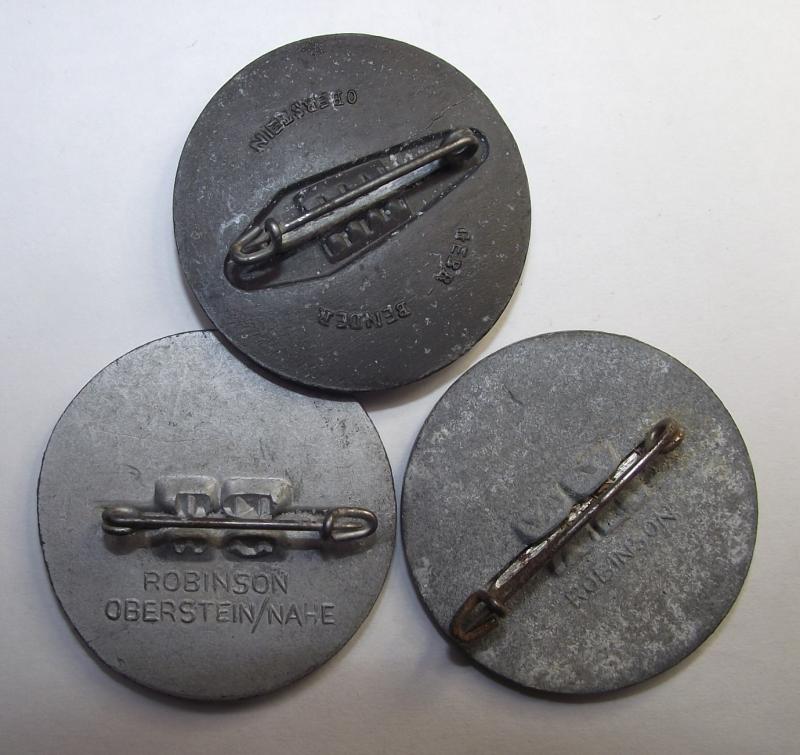 All three event badges are in good condition with a certain amount of verdigris. The rear have there period fixing pins and makers details.