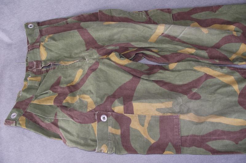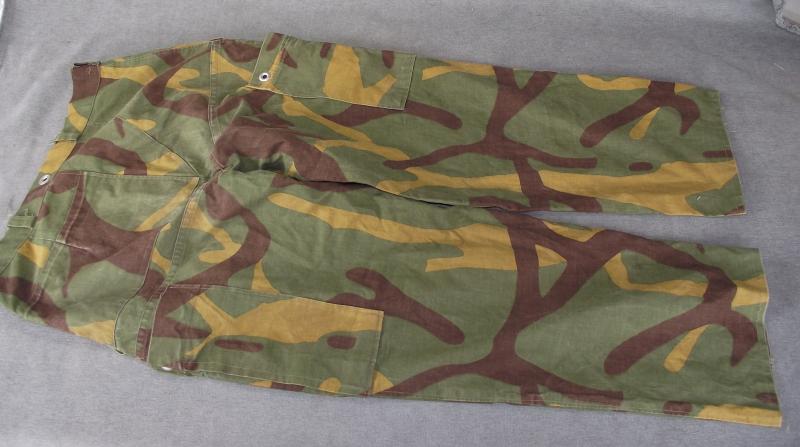 Nice interesting pair of trousers cannibalized from a M68 shelter halve during the Yugoslavian conflicts. Condition is very good with bright color and perfect stitching, missing its to closer button.Trouser size is approximate and done using a tape measure whilst garment is laying flat.