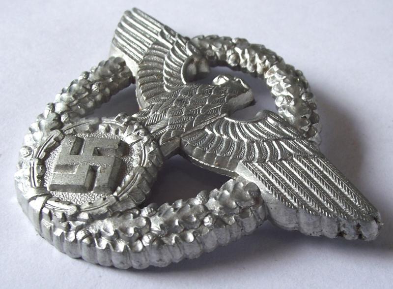 Aluminium struck with great finish and sharp detail. The rear has both fixing prongs present.