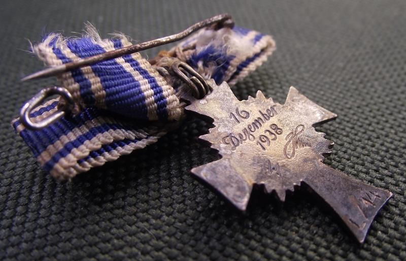 In very nice condition with most of its silver finish intact and only one tiny chip to the white enamel , bottom right arm. Blue enamel is perfect. The rear has its usual 38 date and script with the added bonus of this example having the LDO number for the firm Friedrich and Ortho. Ribbon bow is complete with its period fixing pin.