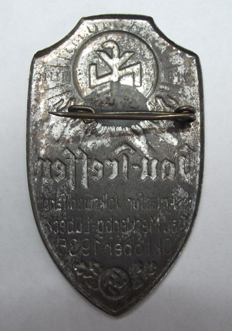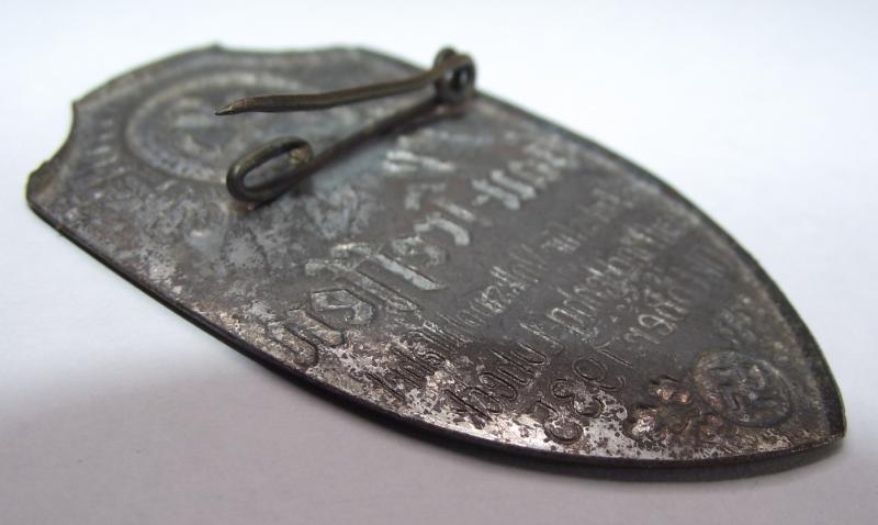 Badge has over 90% of its gold finish with a good amount of patina and a little amount of rust bleed. The rear has its period fixing pin.